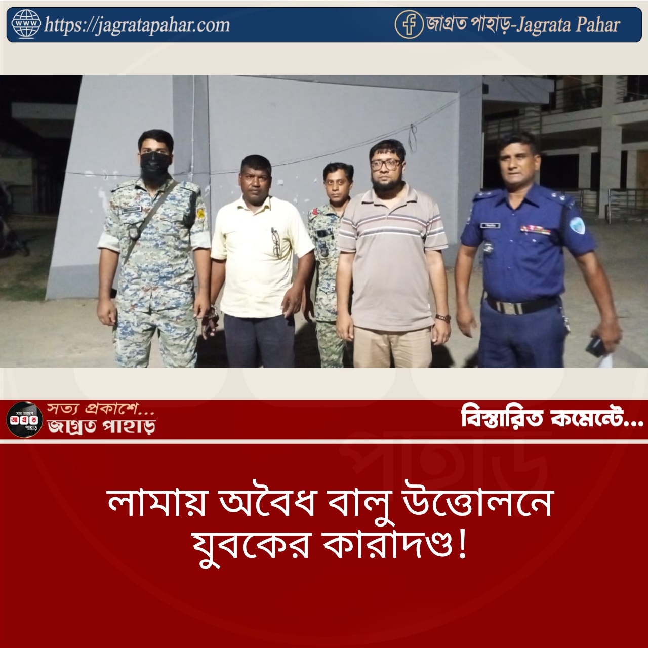 লামায় অবৈধ বালু উত্তোলনে যুবকের কারাদণ্ড।